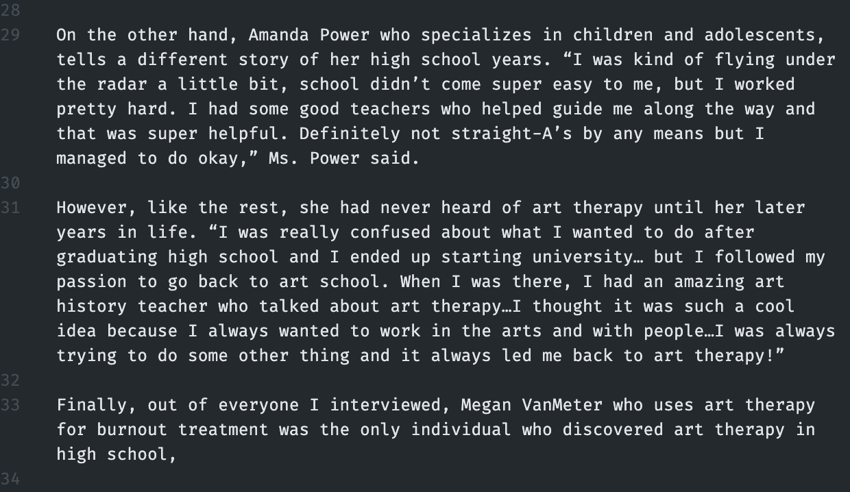 title: | The title of your article, in quotation marks. | "Art Therapy" |